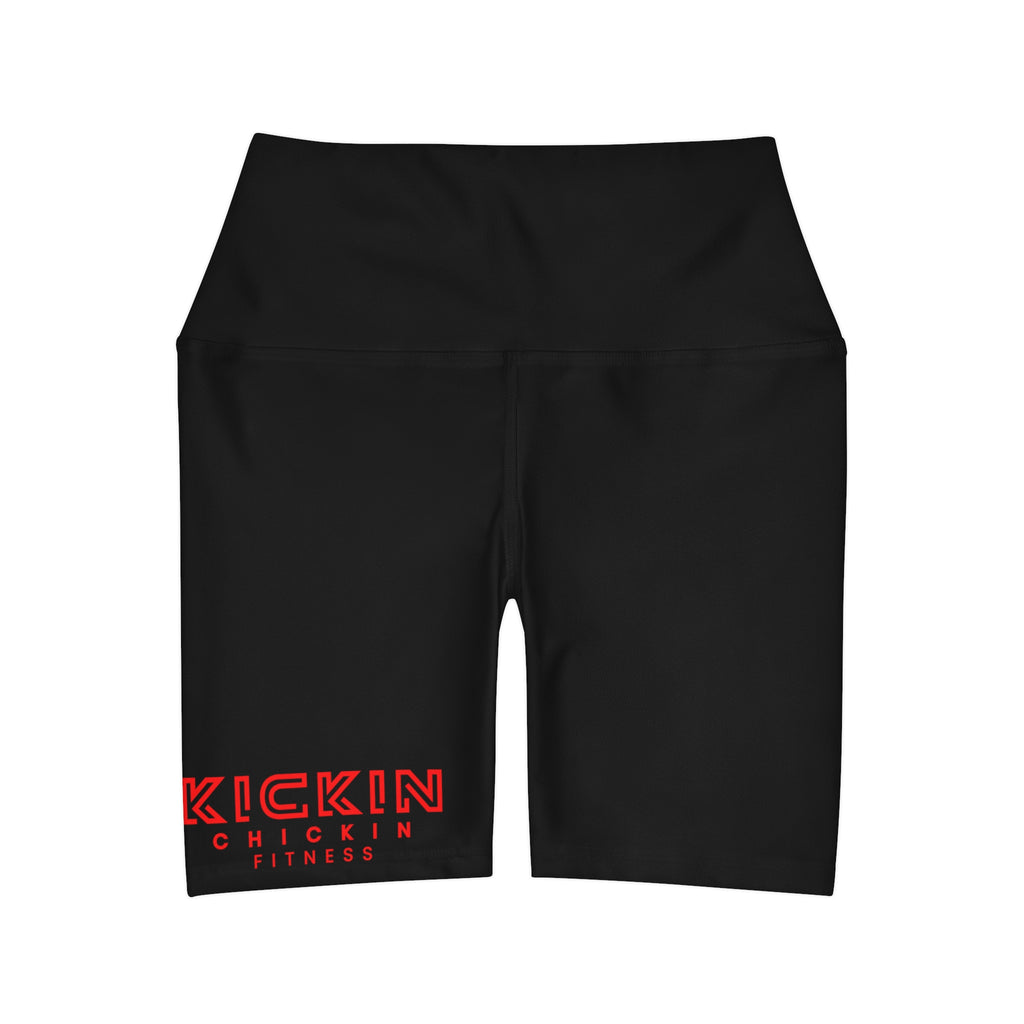 Kickin Chickin Fitness High Waisted Yoga Shorts Black/Red
