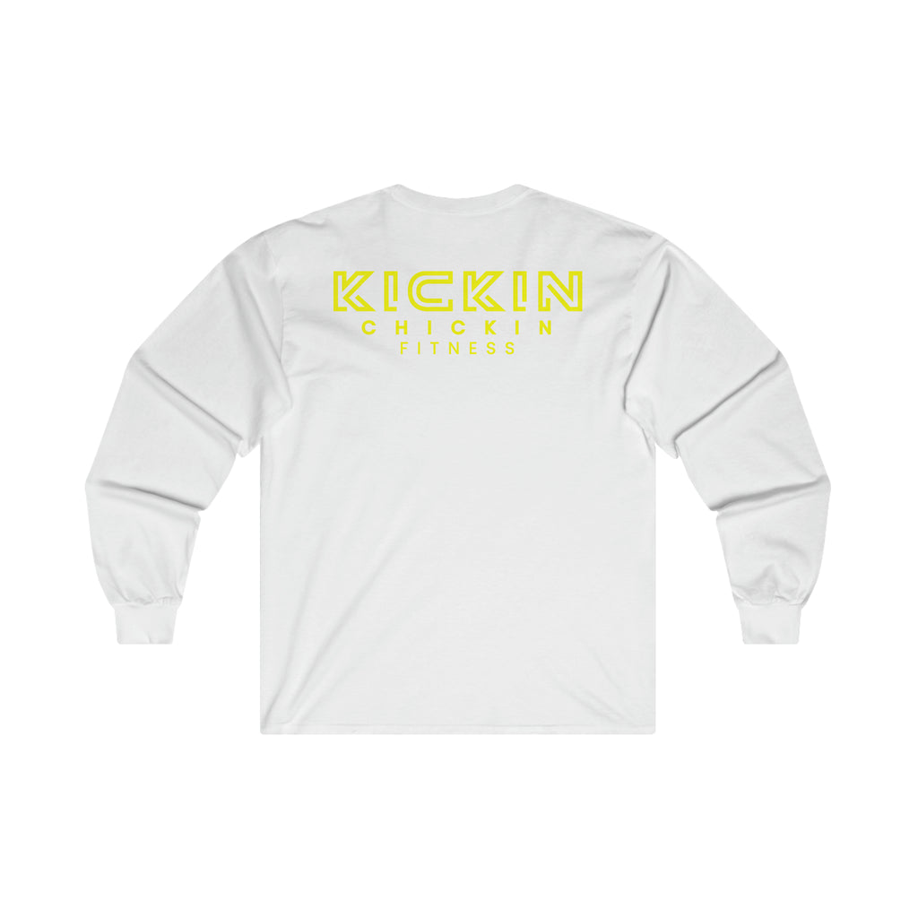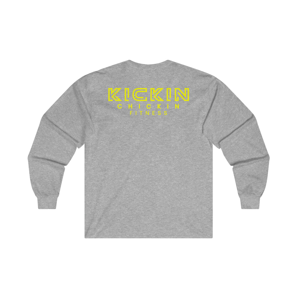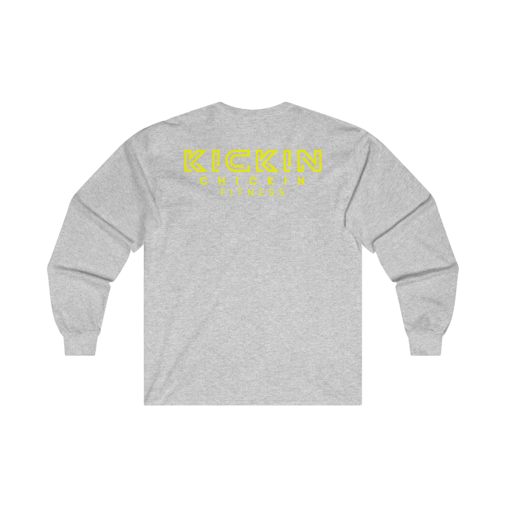 Kickin Chickin Fitness Ultra Cotton Long Sleeve Tee Yellow Logo