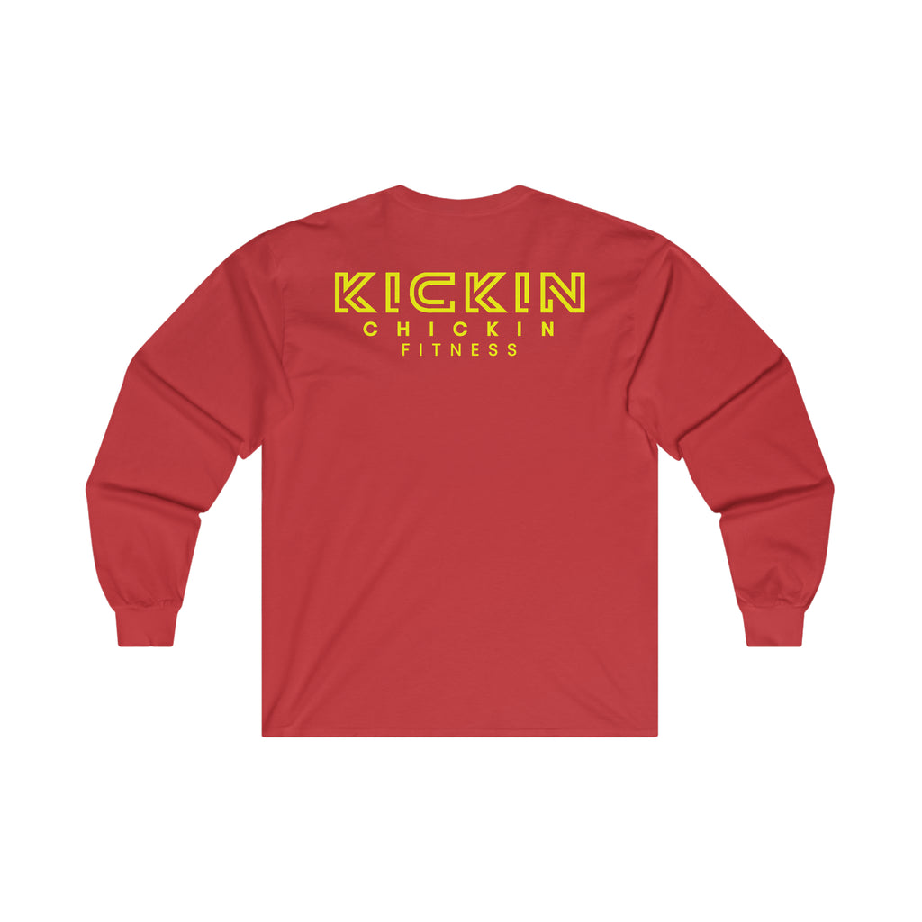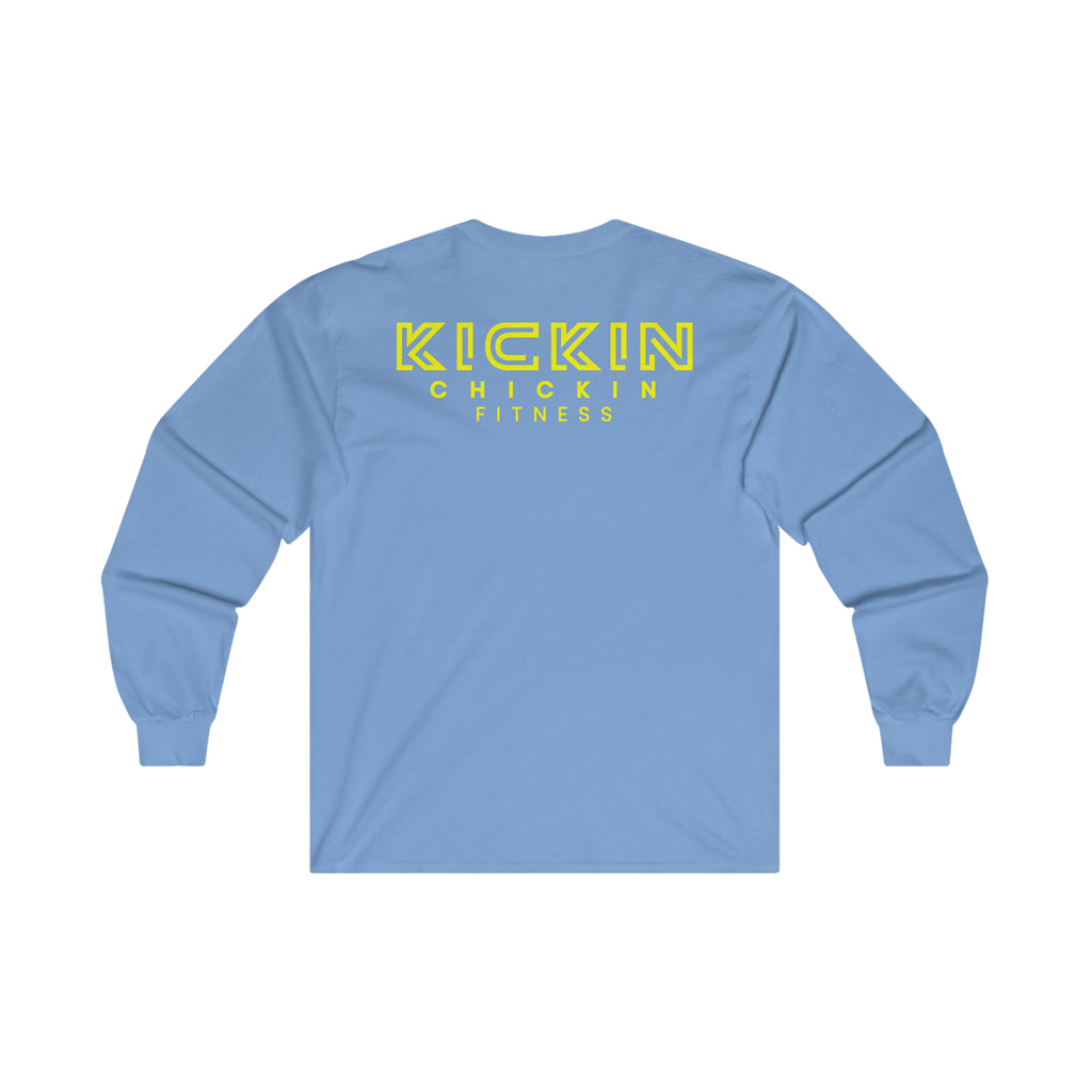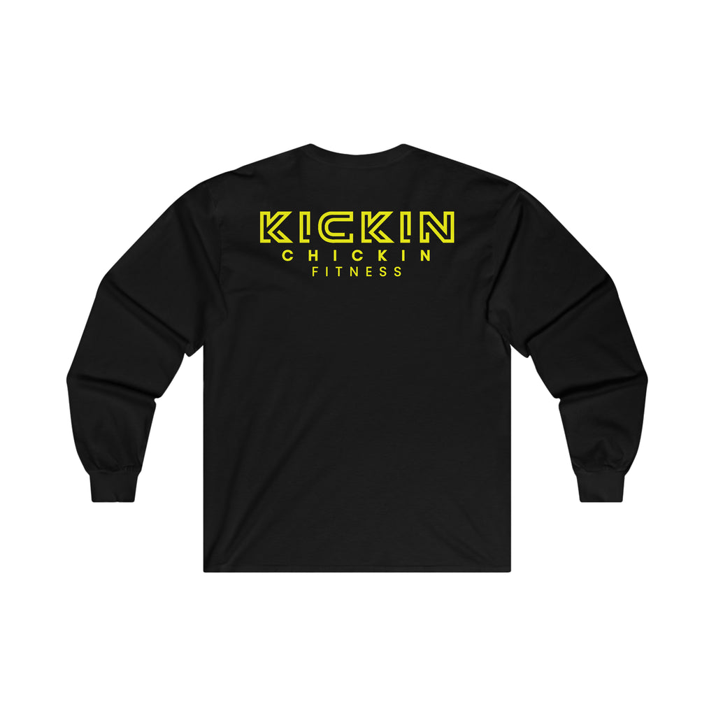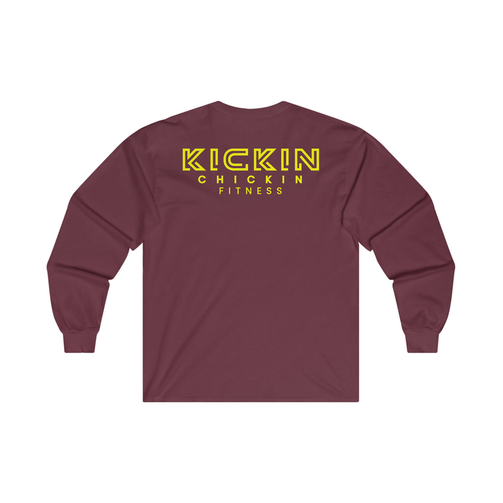 Kickin Chickin Fitness Ultra Cotton Long Sleeve Tee Yellow Logo