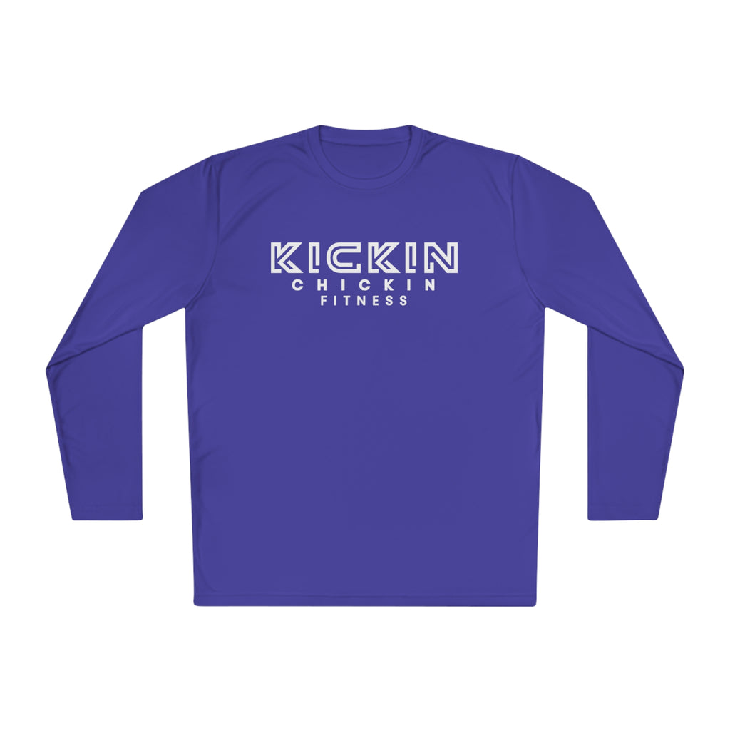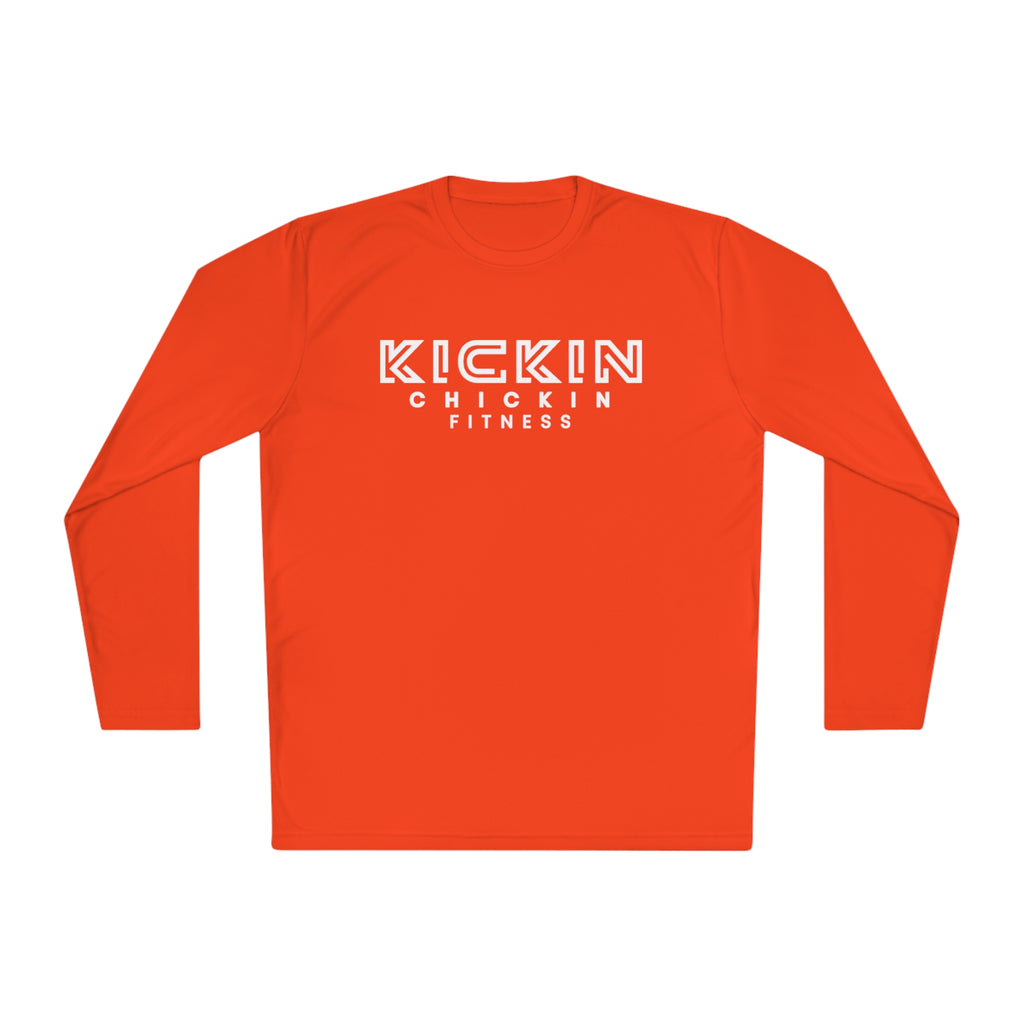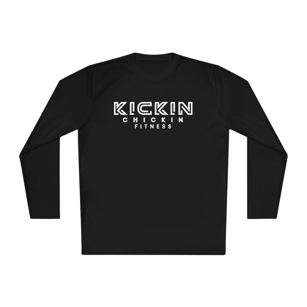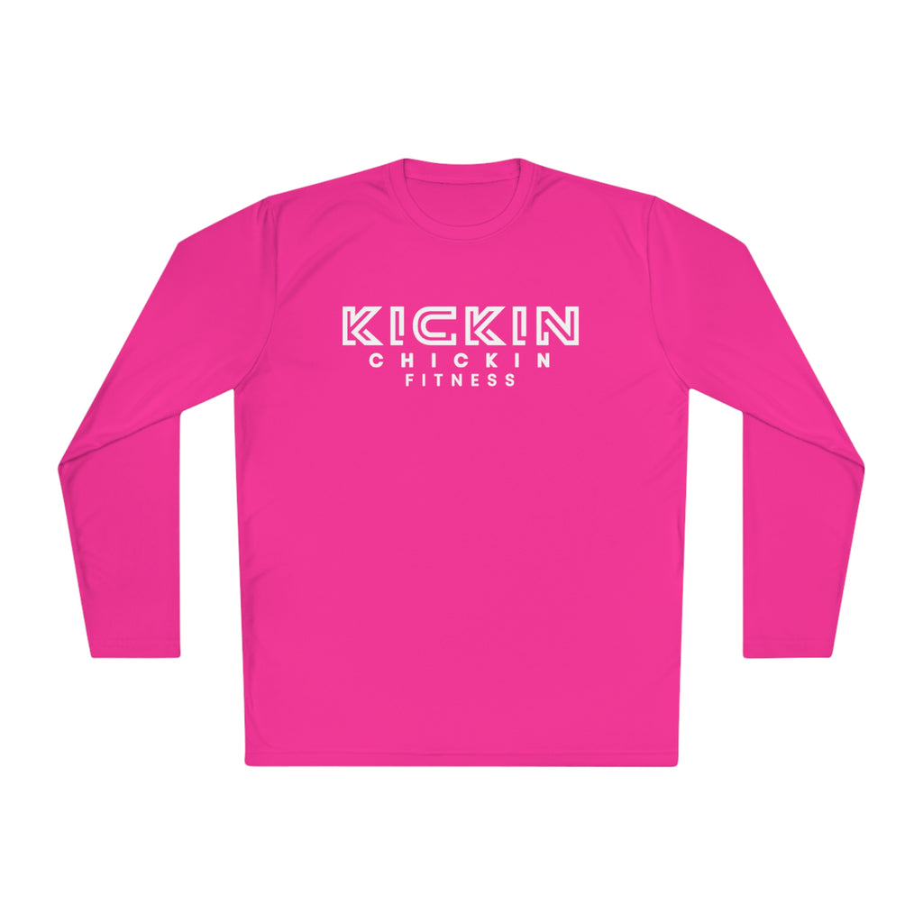 Kickin Chickin Fitness Unisex Lightweight Long Sleeve Tee White Logo