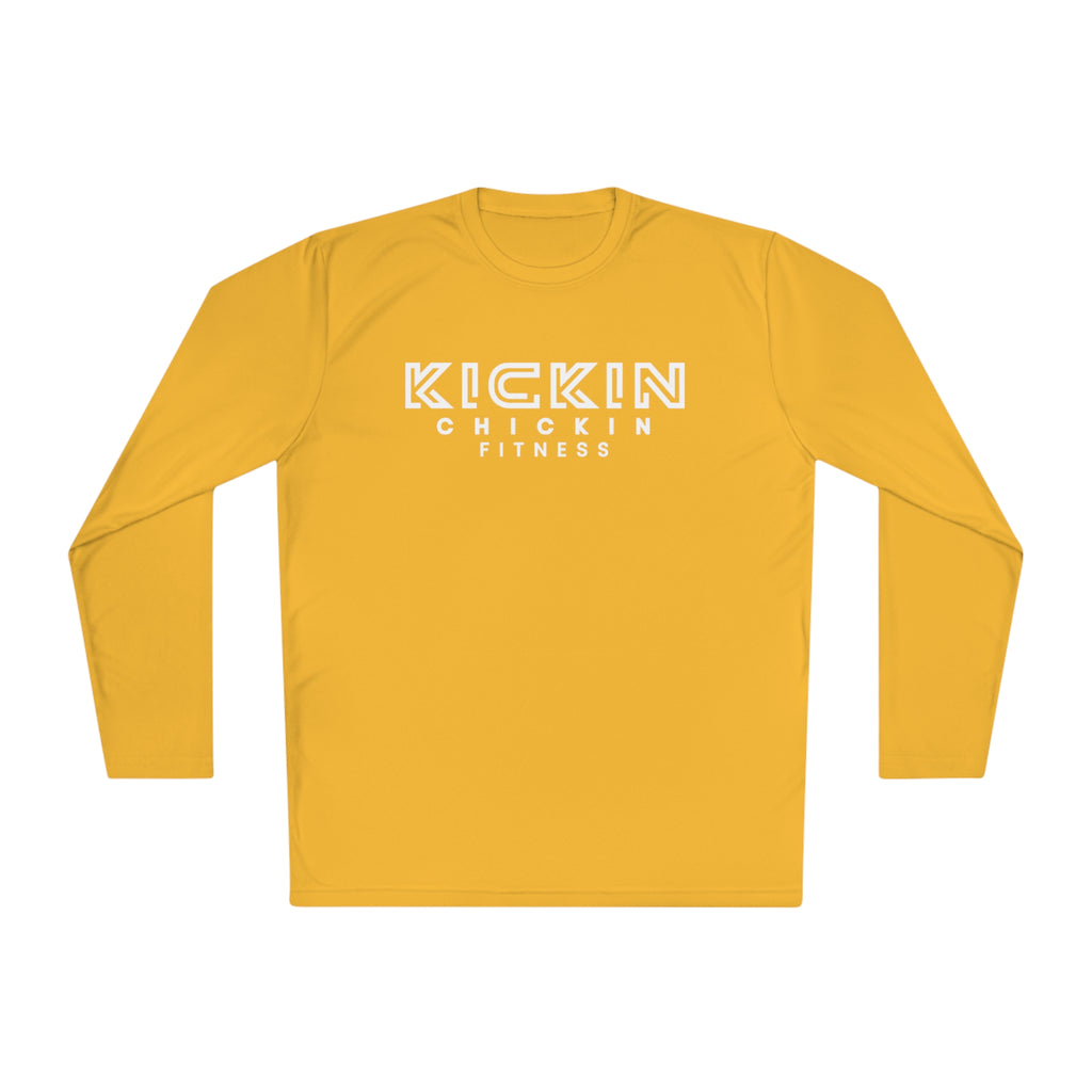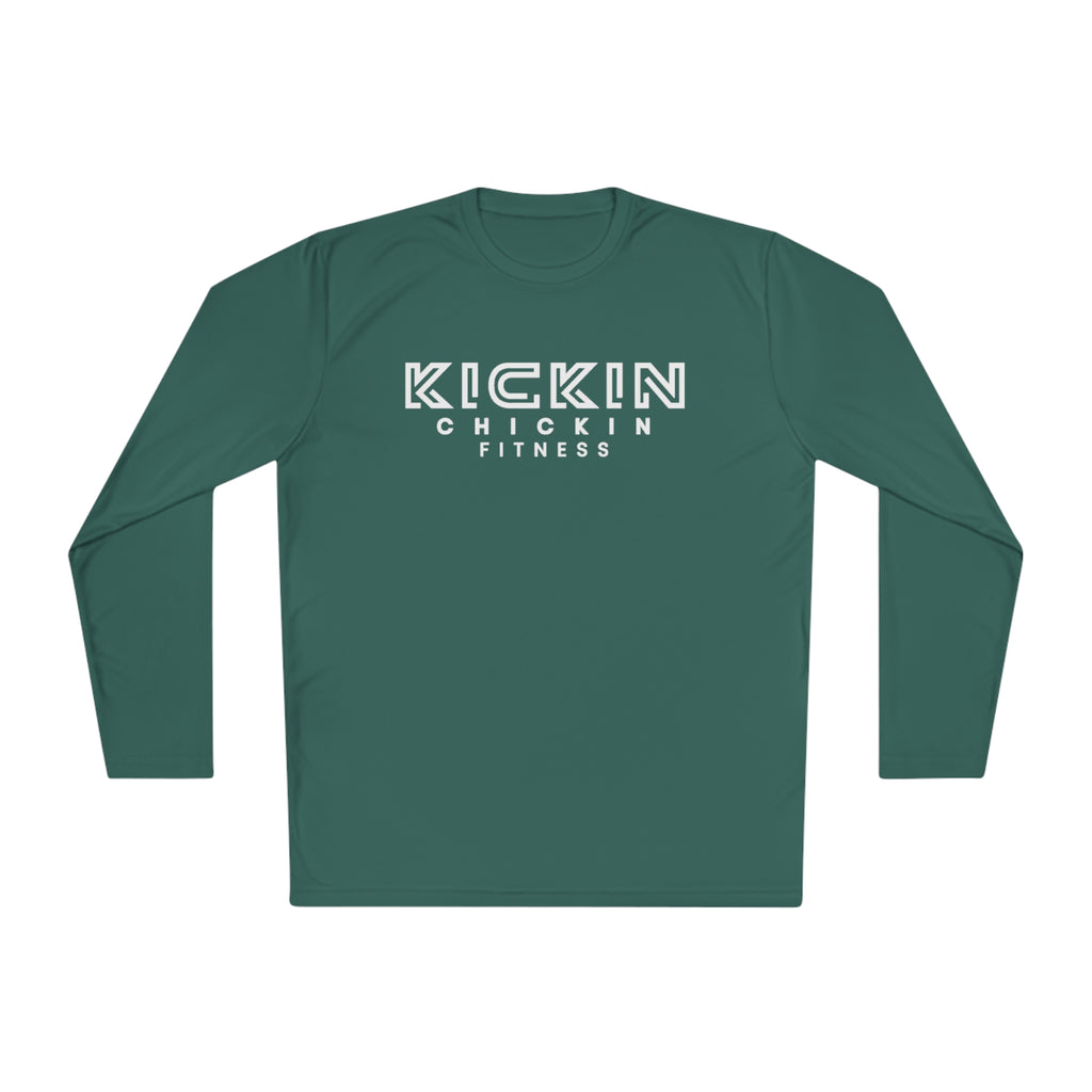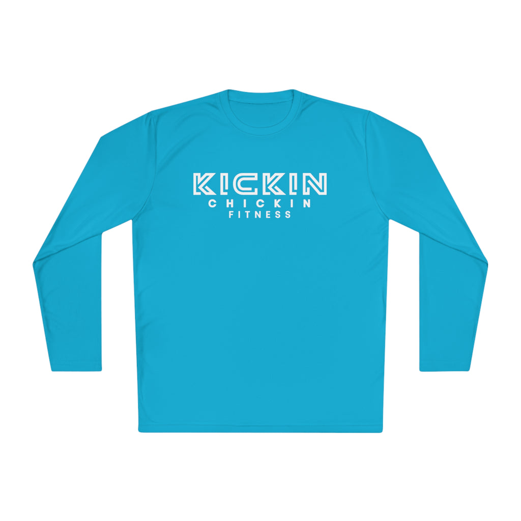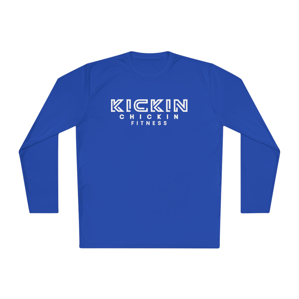 Kickin Chickin Fitness Unisex Lightweight Long Sleeve Tee White Logo