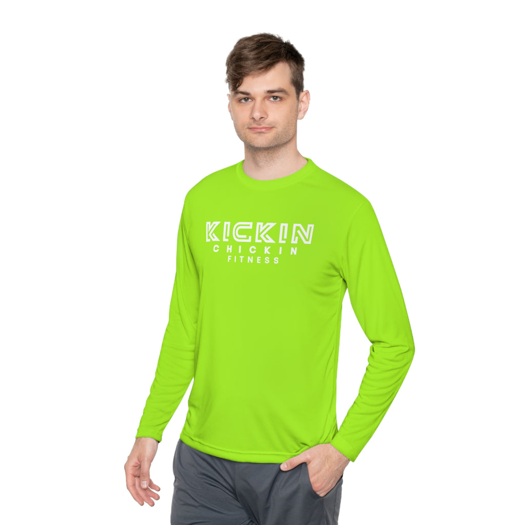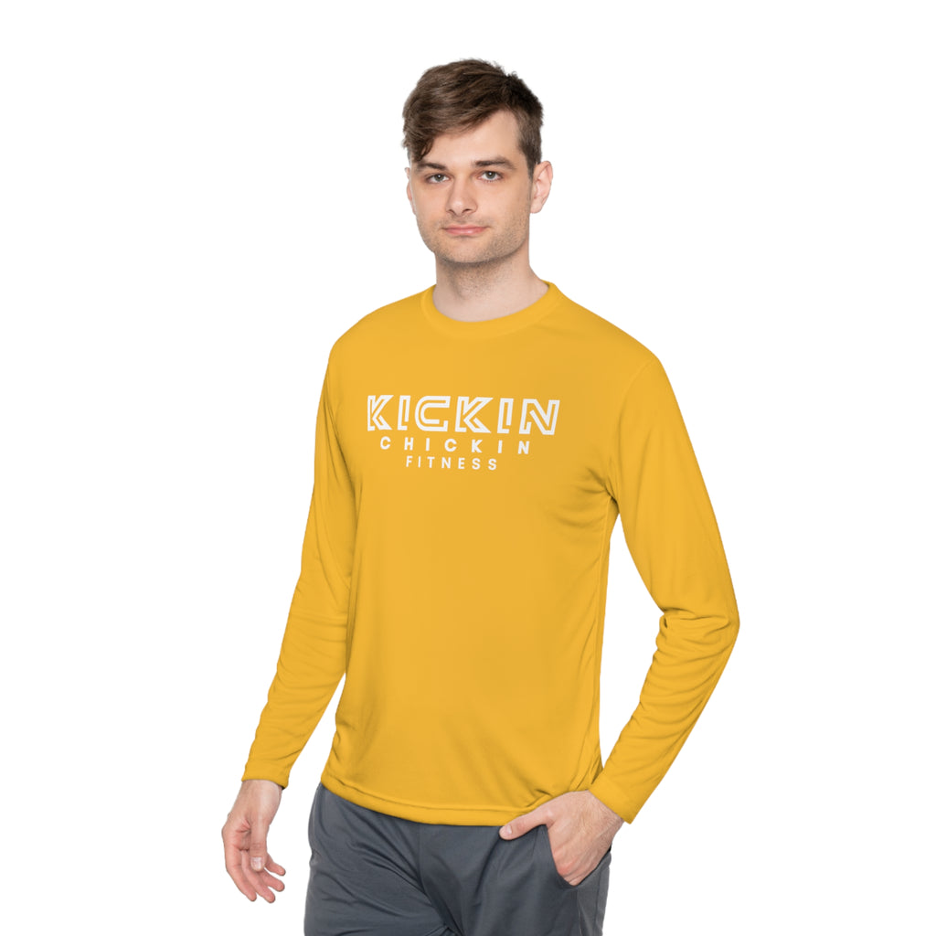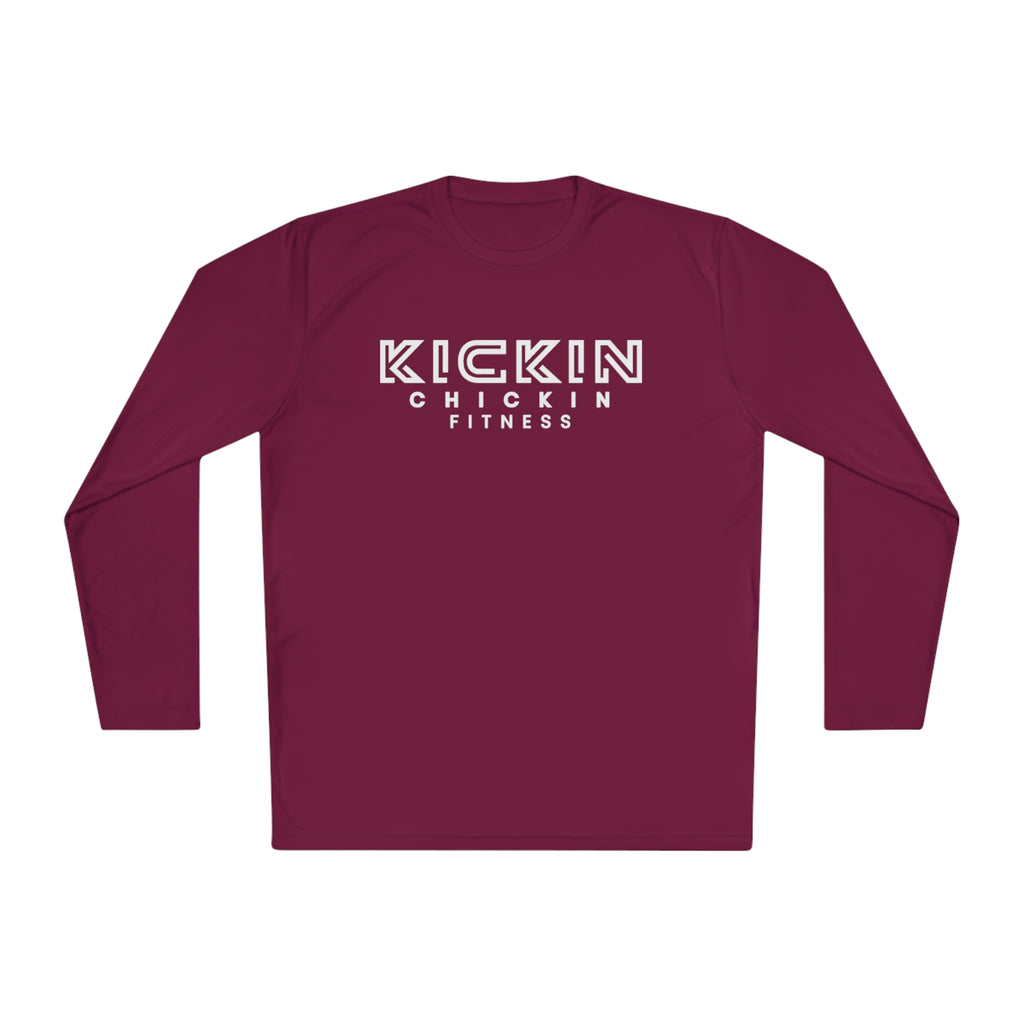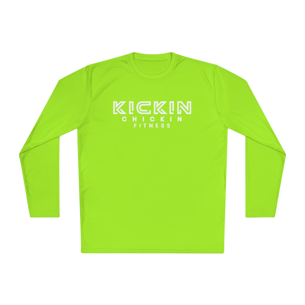 Kickin Chickin Fitness Unisex Lightweight Long Sleeve Tee White Logo