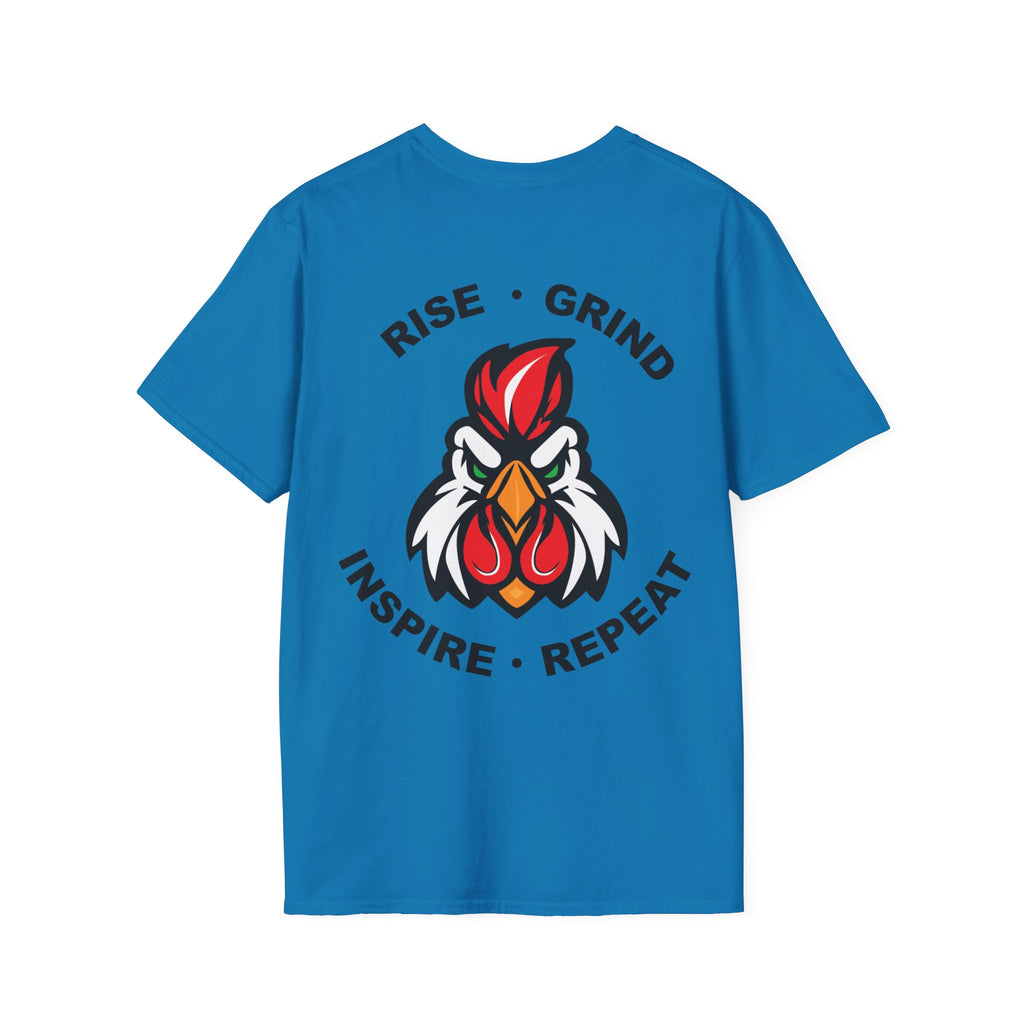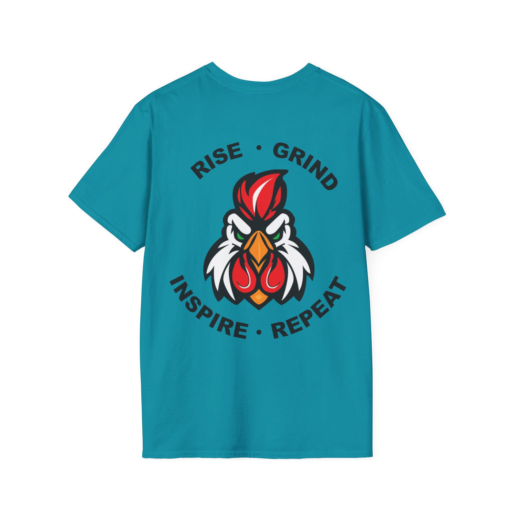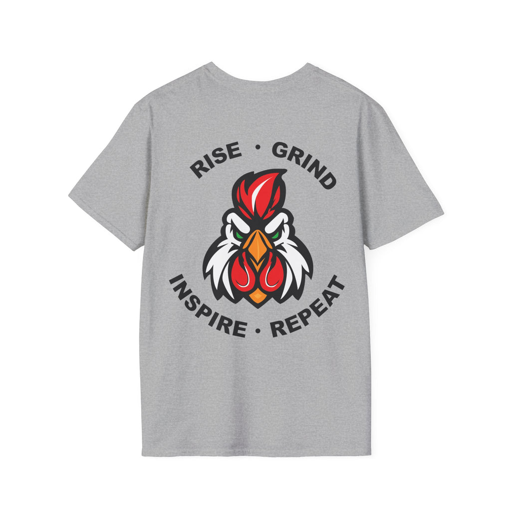 Kickin Chickin Fitness Unisex Softstyle T Rise, Grind, Inspire, Repeat