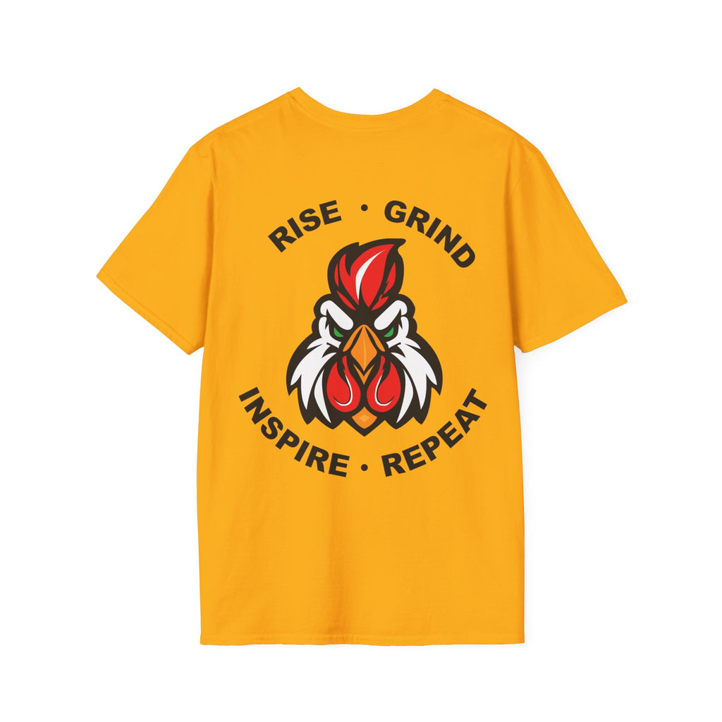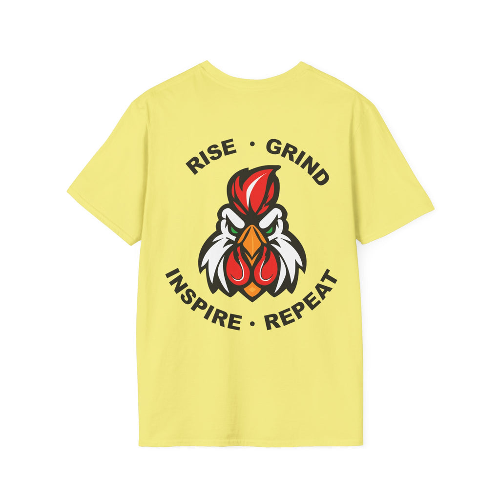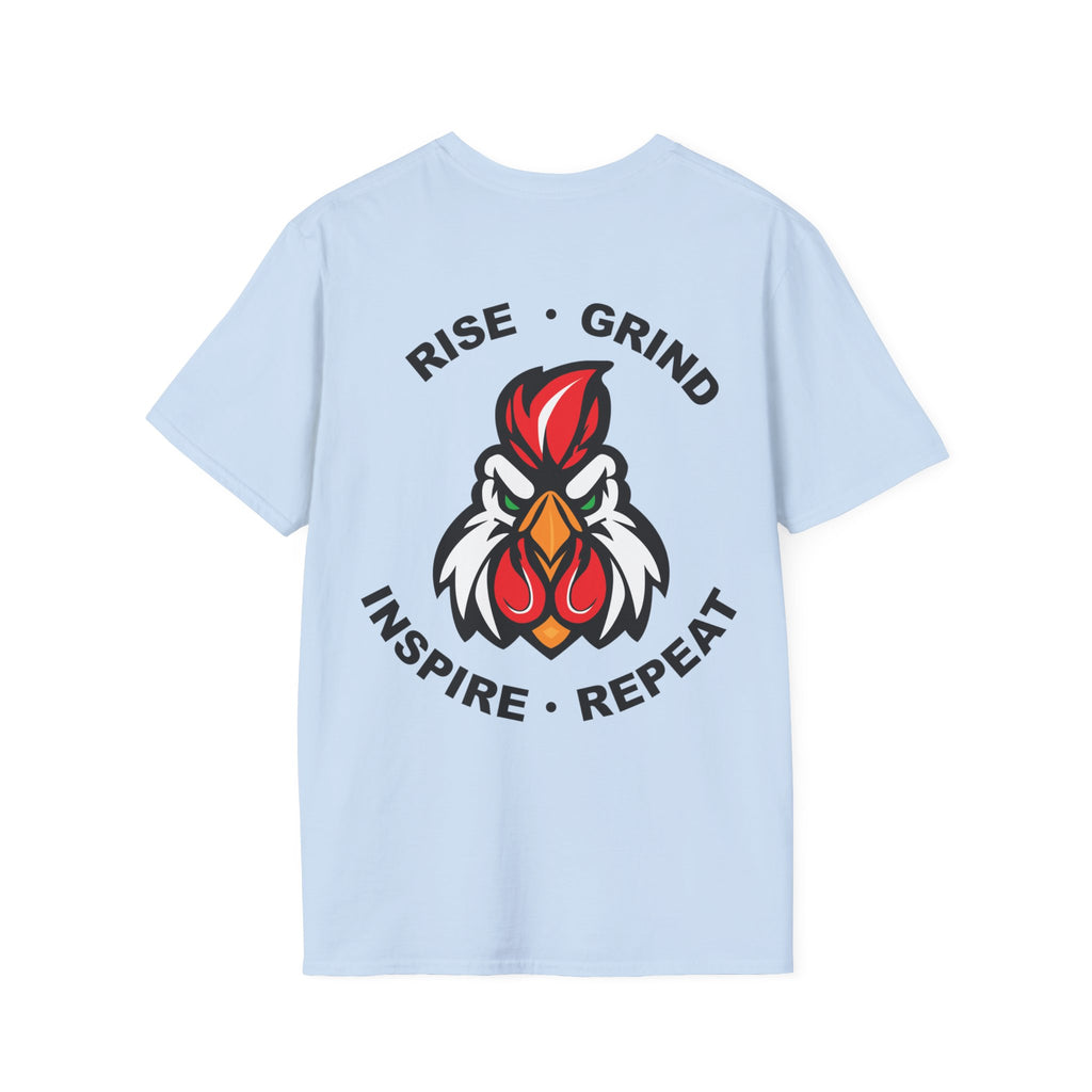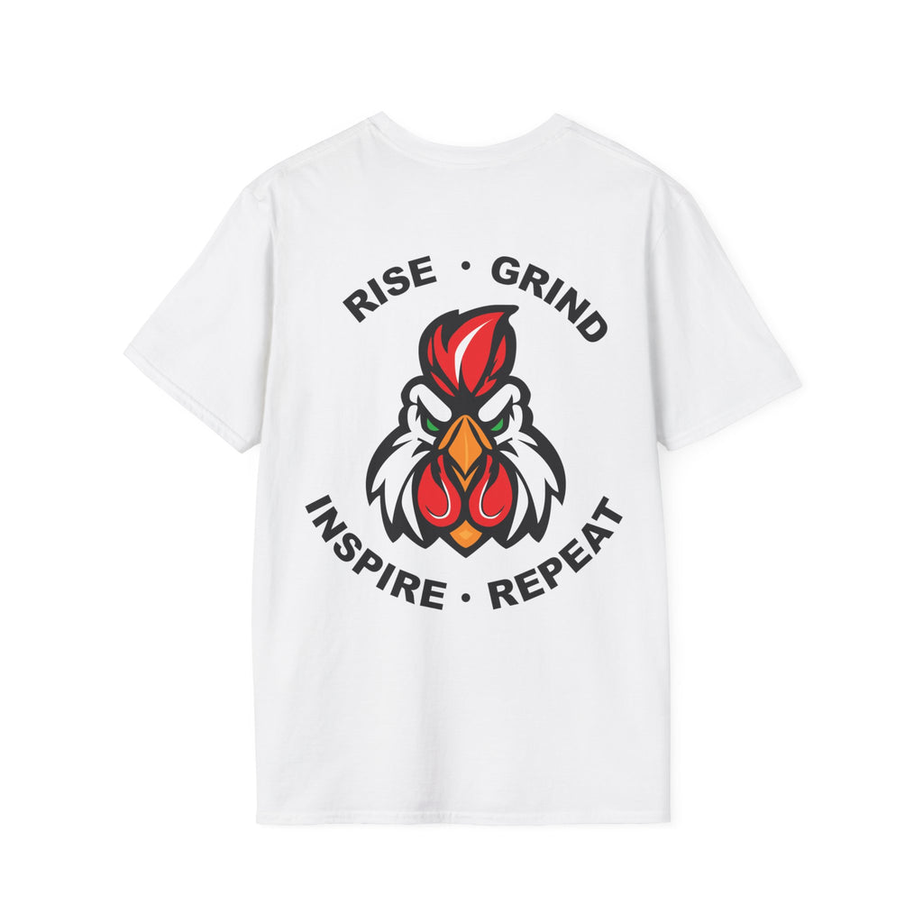 Kickin Chickin Fitness Unisex Softstyle T Rise, Grind, Inspire, Repeat