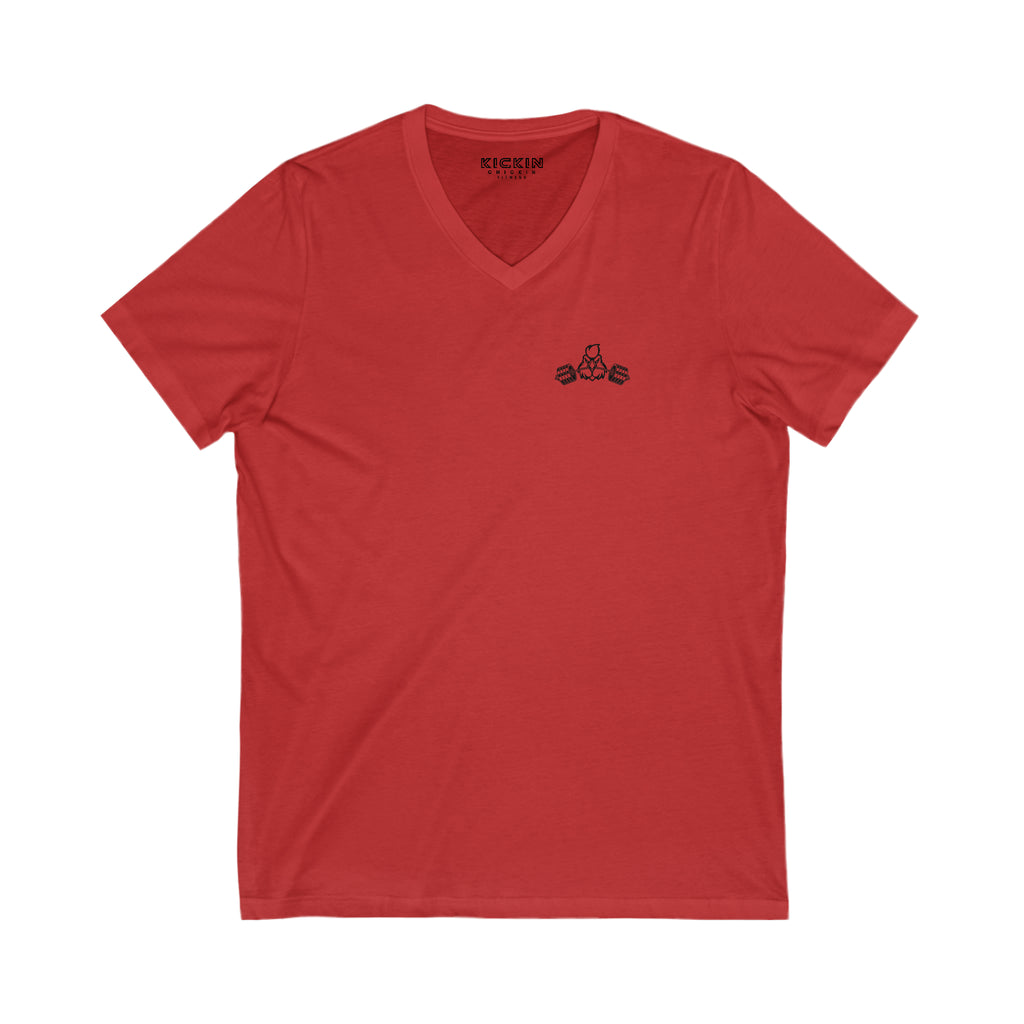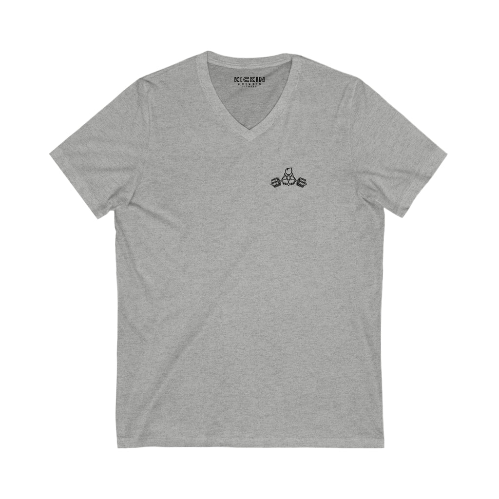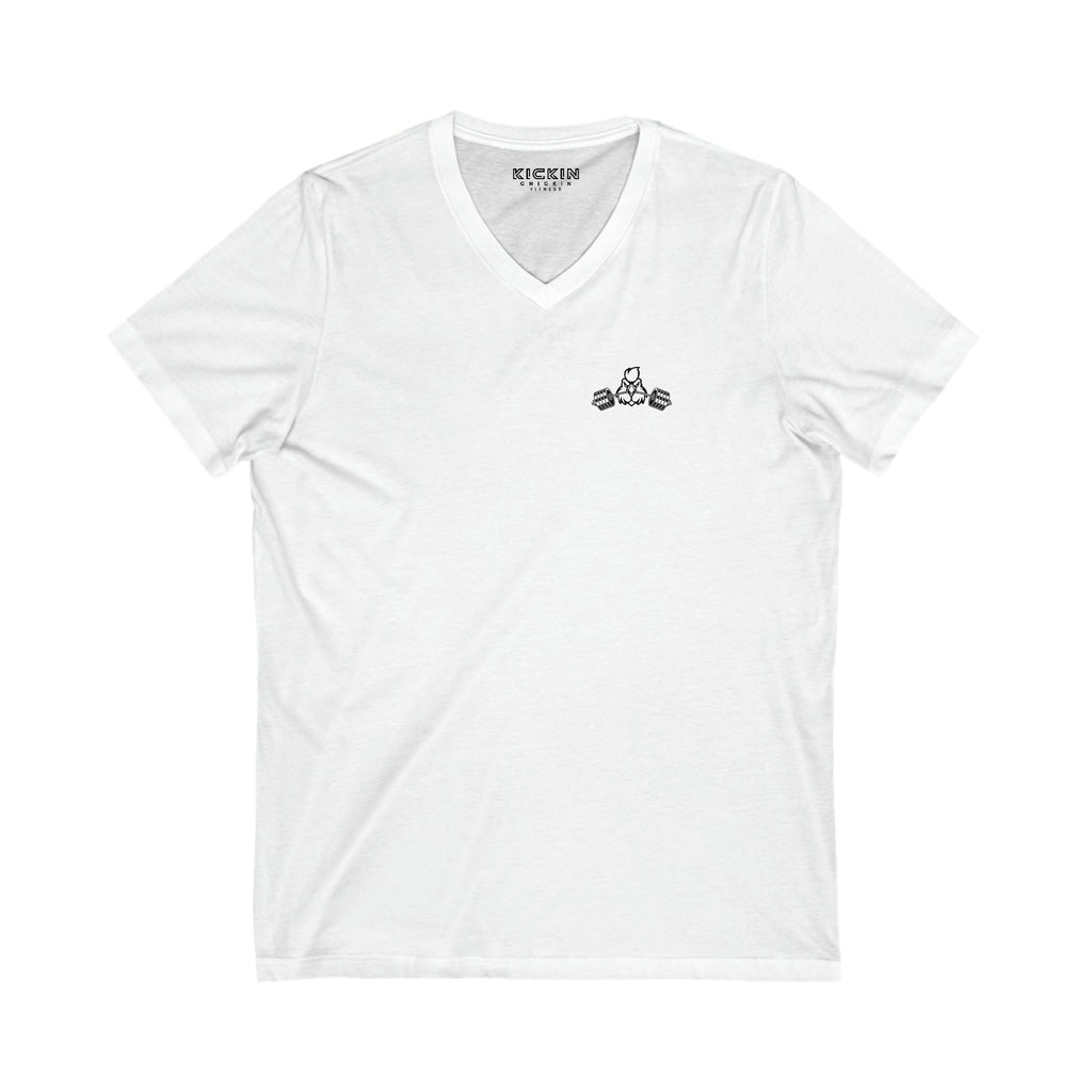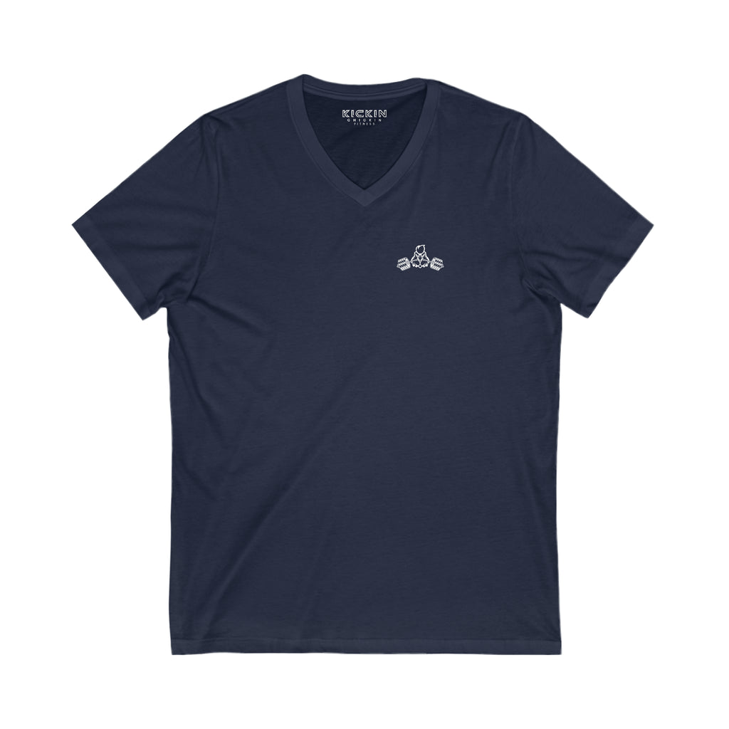 Kickin Chickin Fitness Unisex Jersey Short Sleeve V-Neck Tee Strong Bo