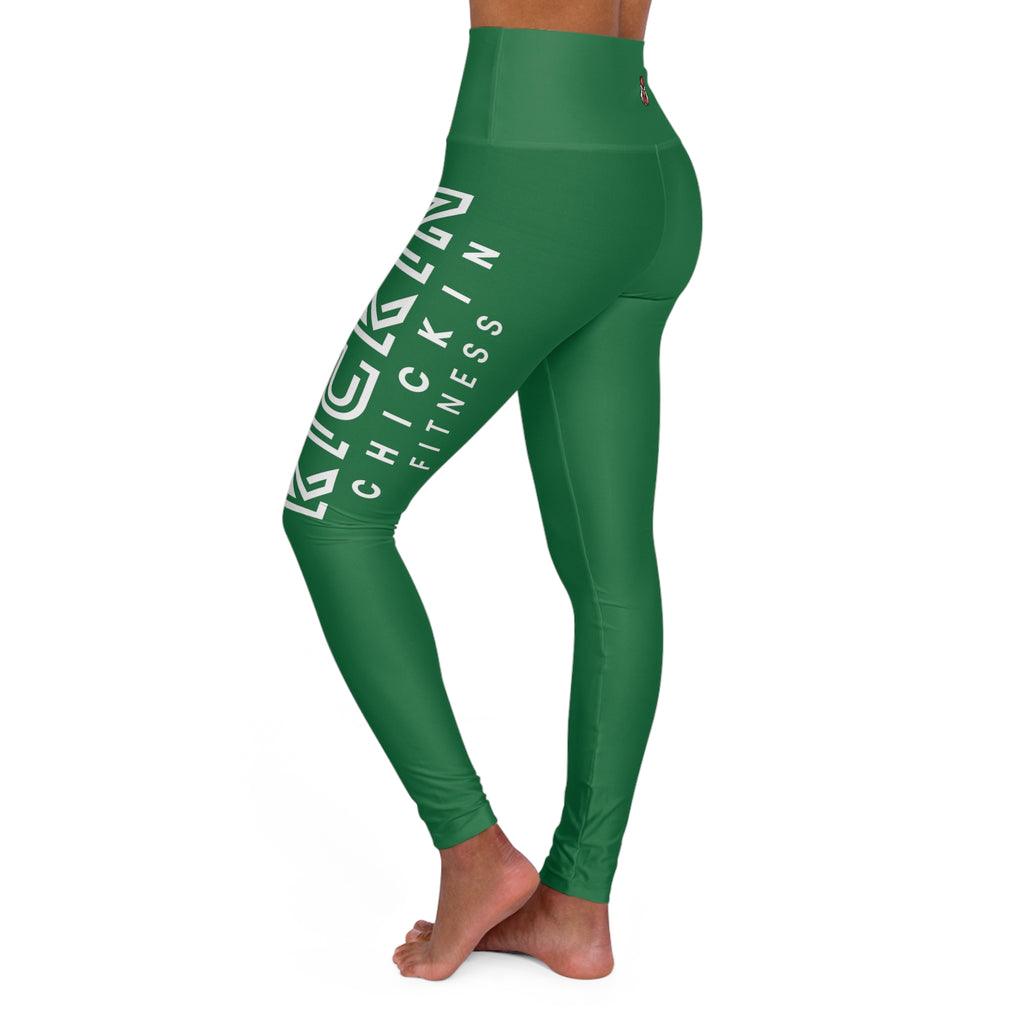 Kickin Chickin Fitness High Waisted Yoga Leggings Dark Green/White