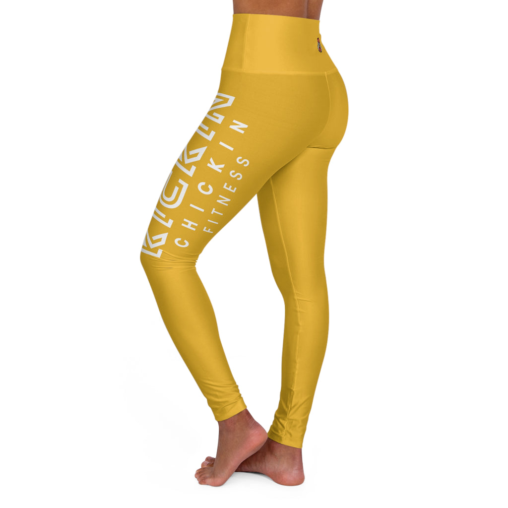 Kickin Chickin Fitness High Waisted Yoga Leggings Yellow/White