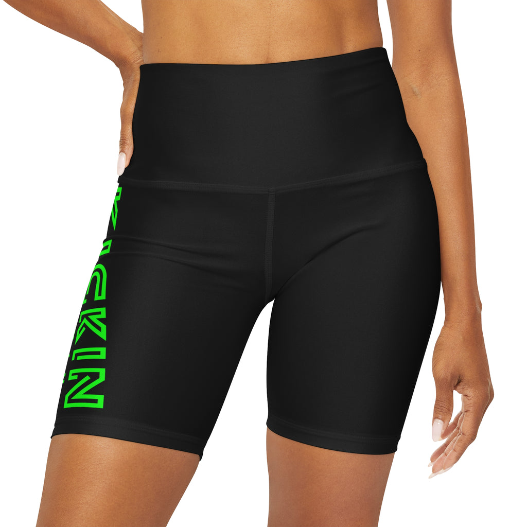 Kickin Chickin Fitness High Waisted Yoga Shorts Black/Green
