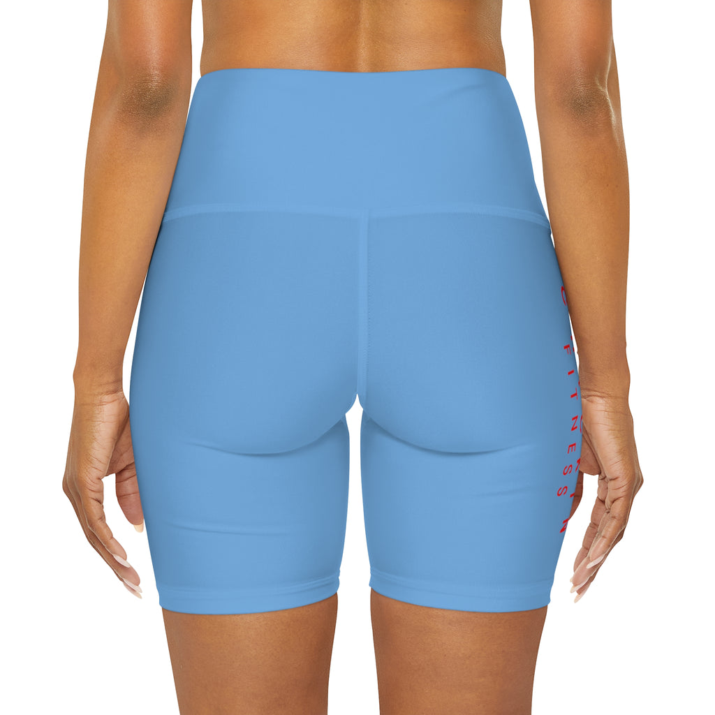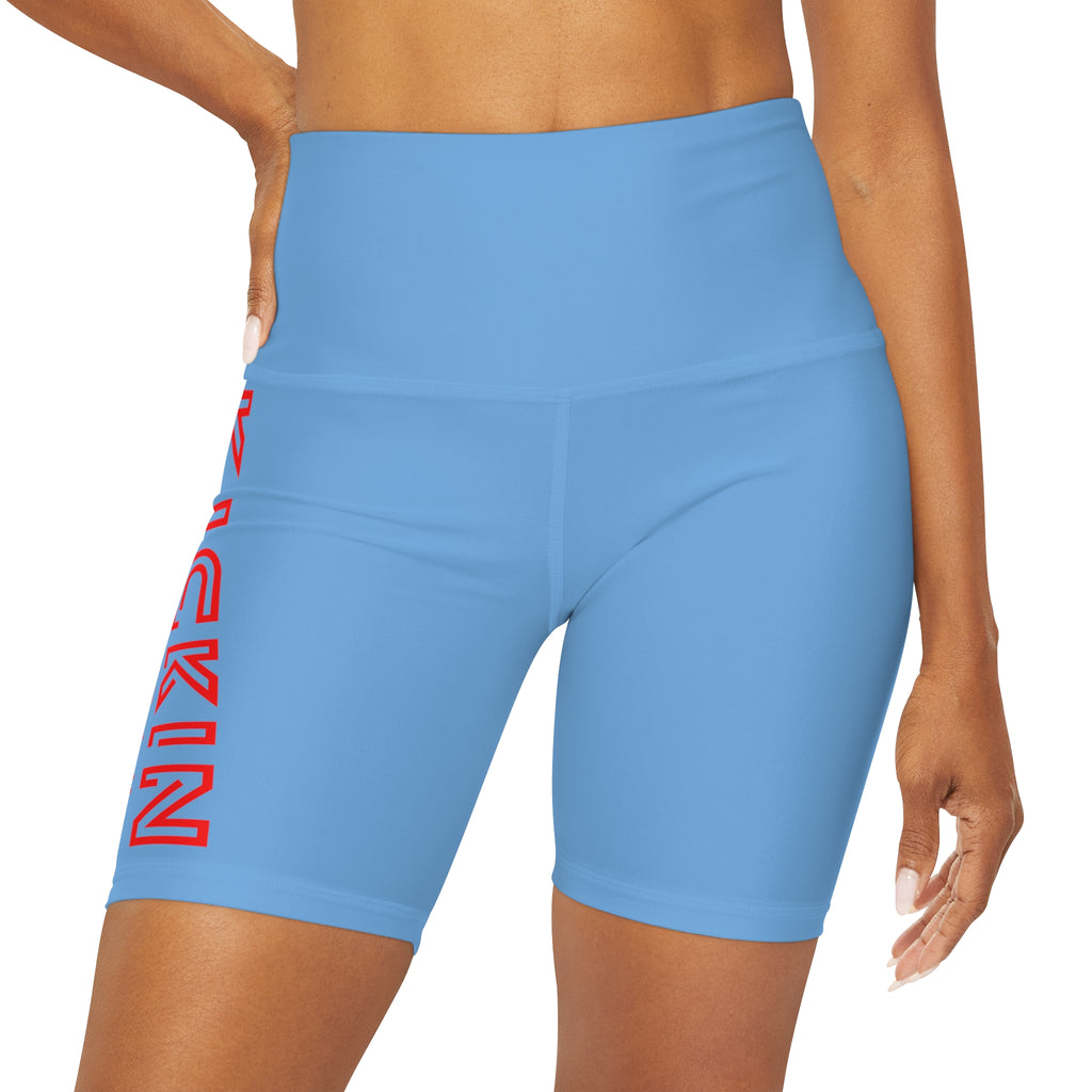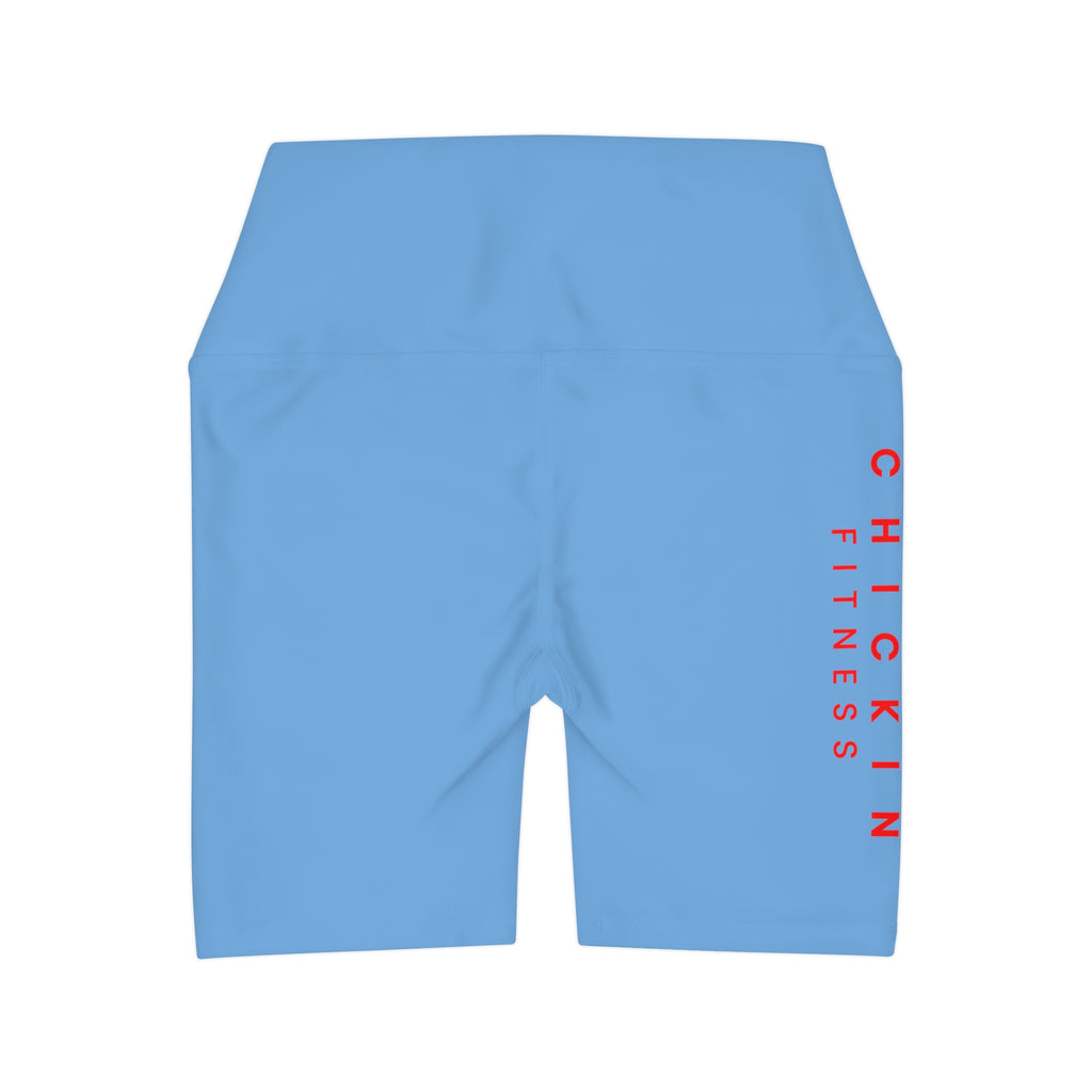 Kickin Chickin Fitness High Waisted Yoga Shorts Lt Blue/Red