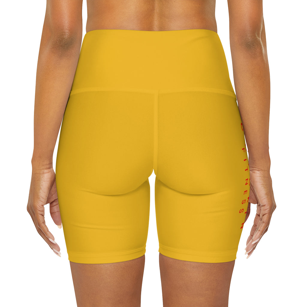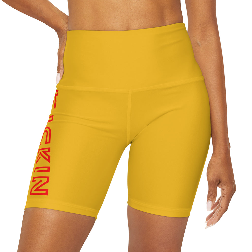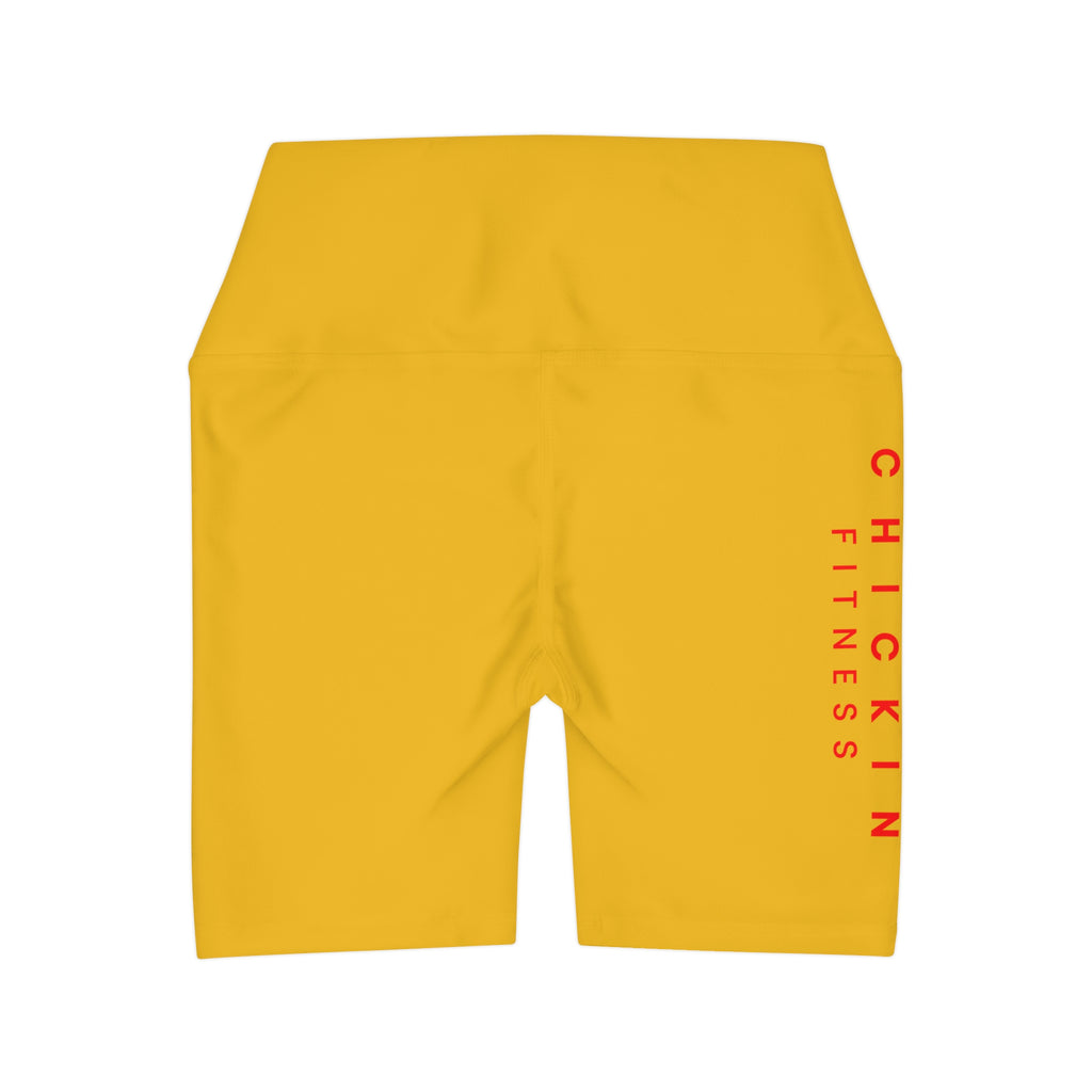 Kickin Chickin Fitness High Waisted Yoga Shorts Lt Yellow/Red