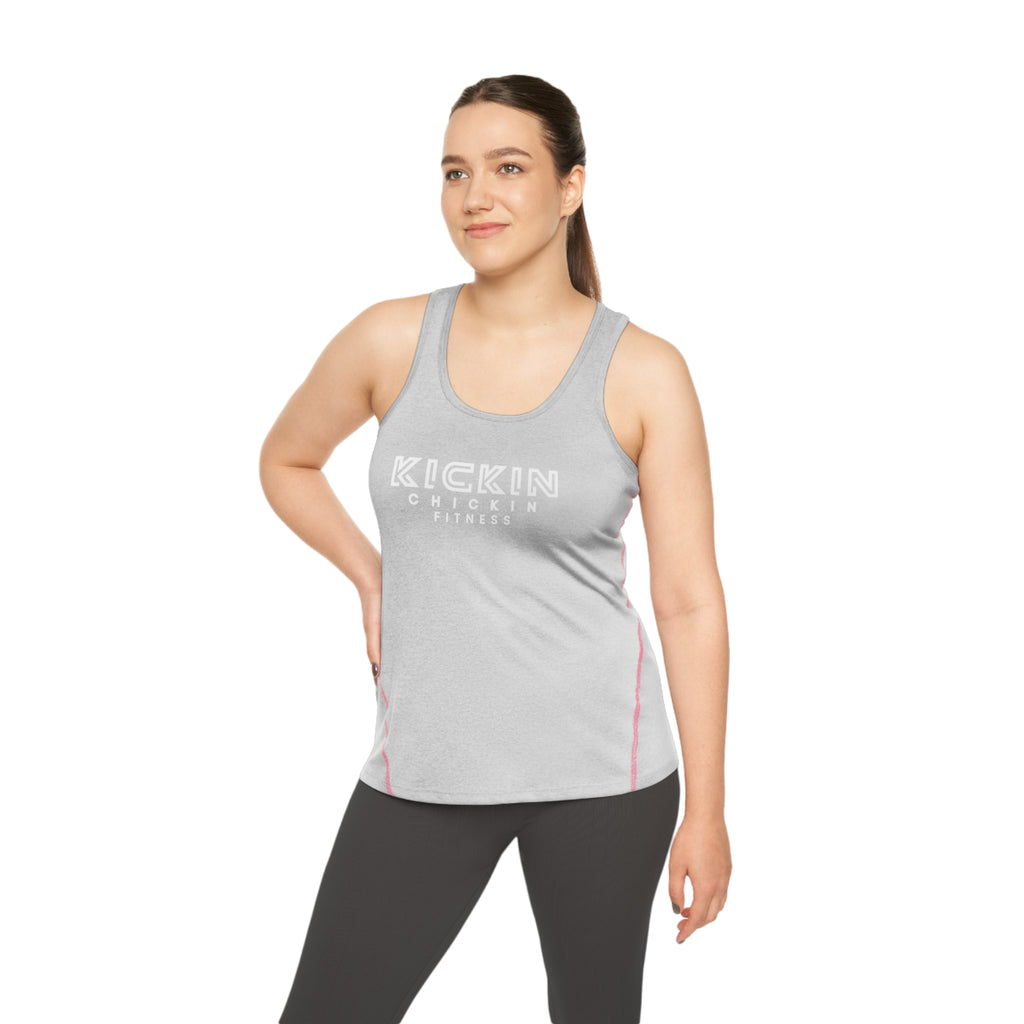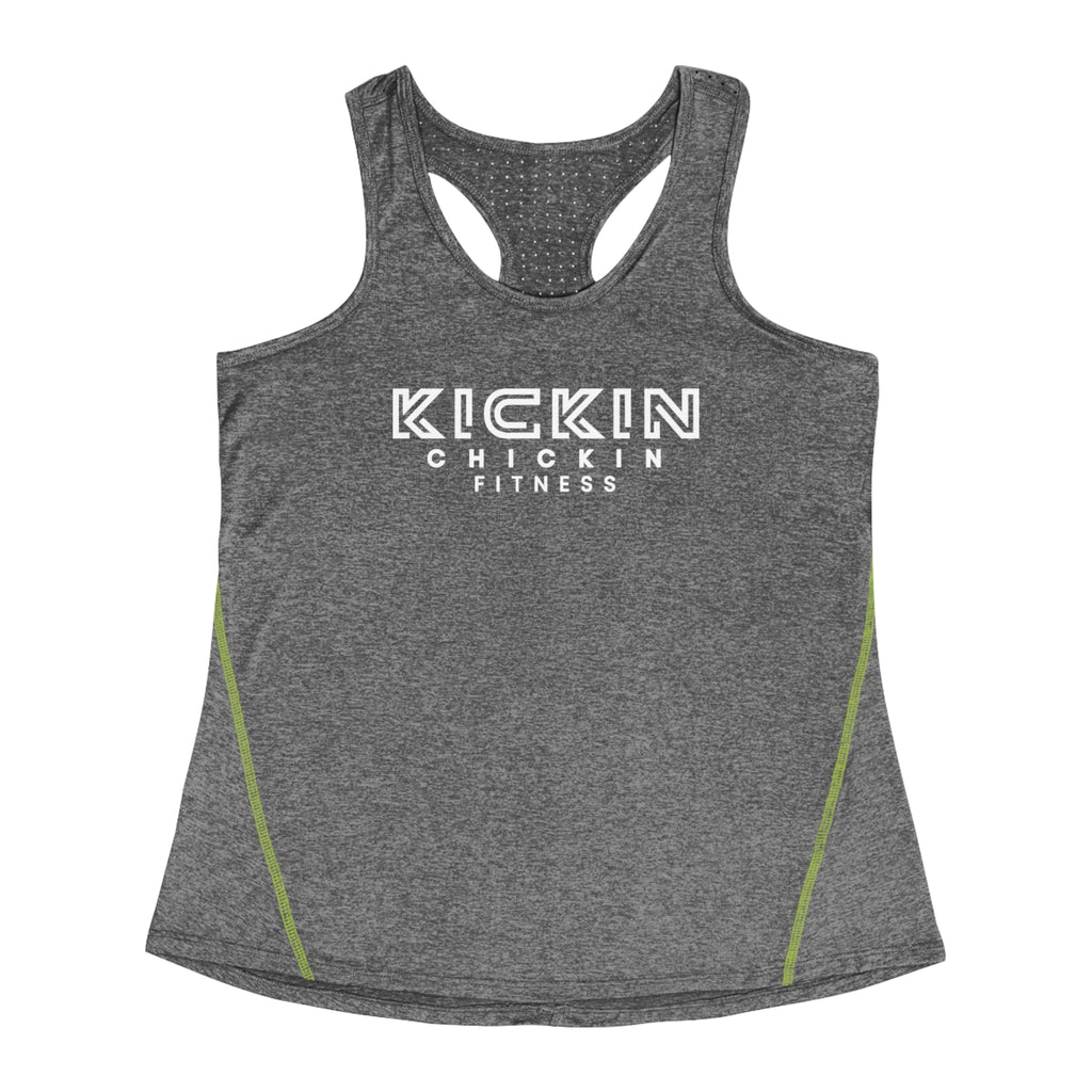 Kickin Chickin Fitness Women's Racerback Sports Top White Logo