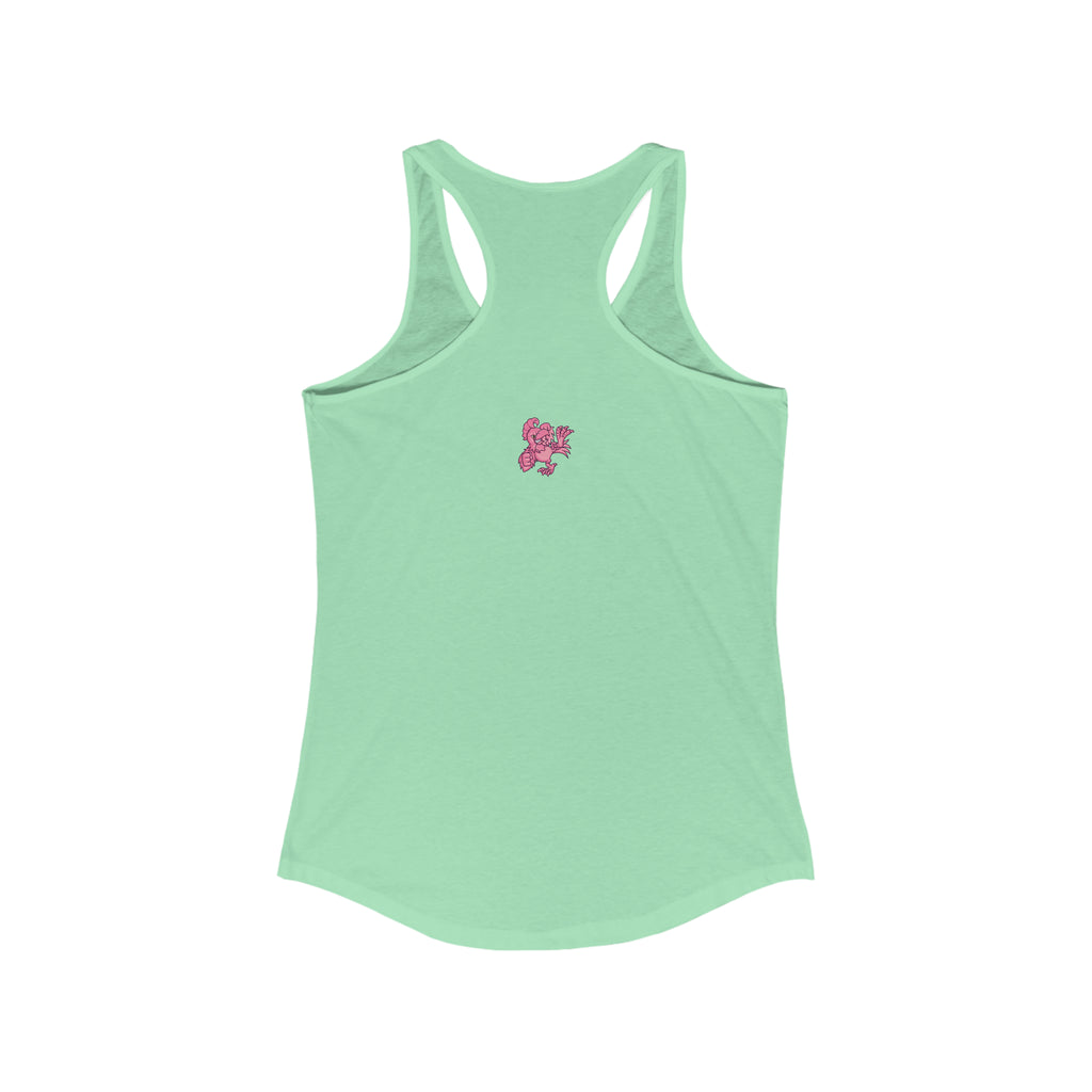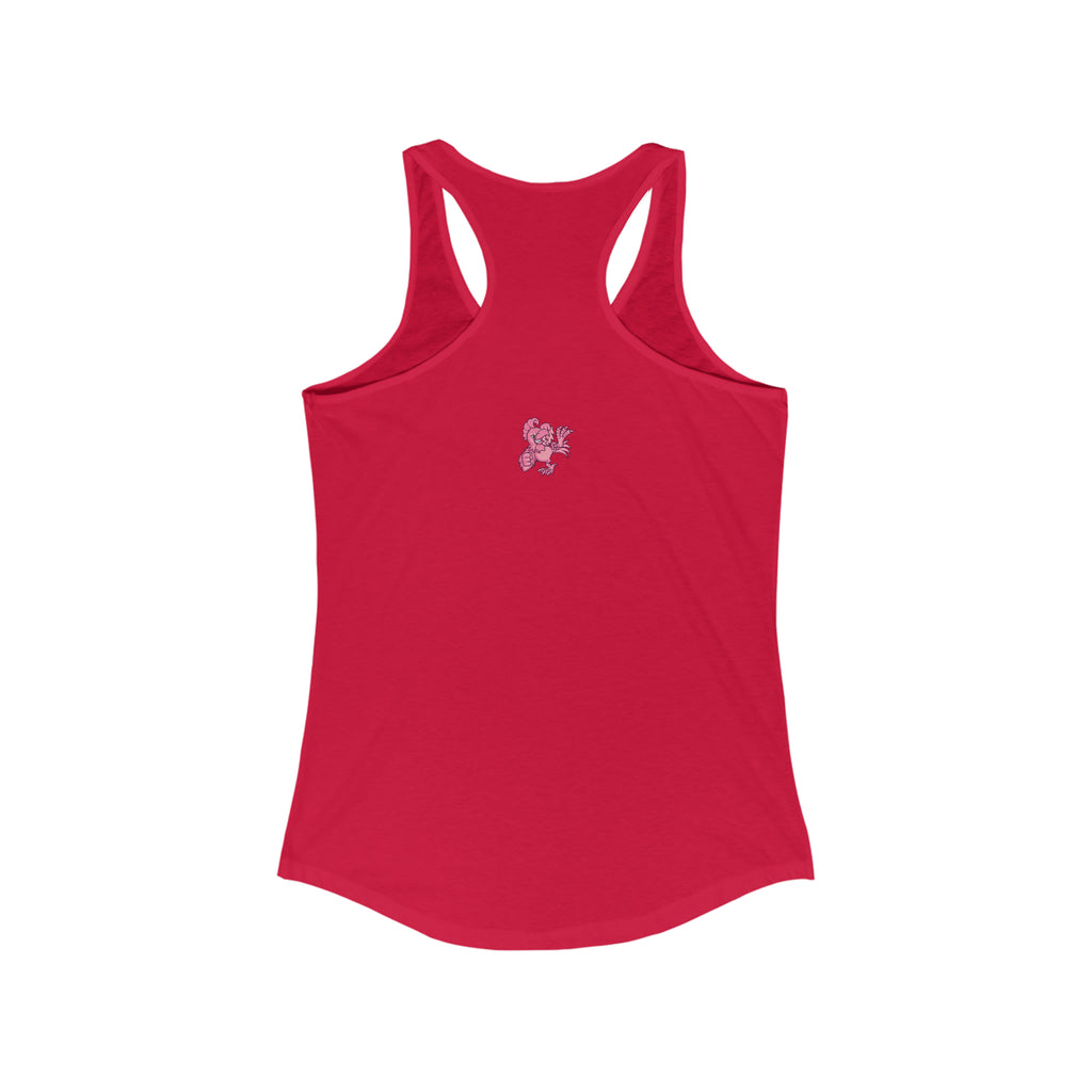 A high-quality print of this slim fit tank-top will turn heads. Bystanders won't be disappointed - the racerback cut looks good on any woman's shoulders.