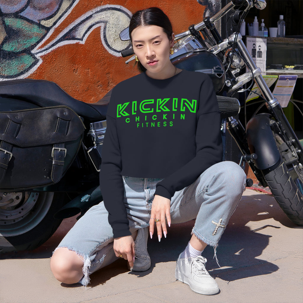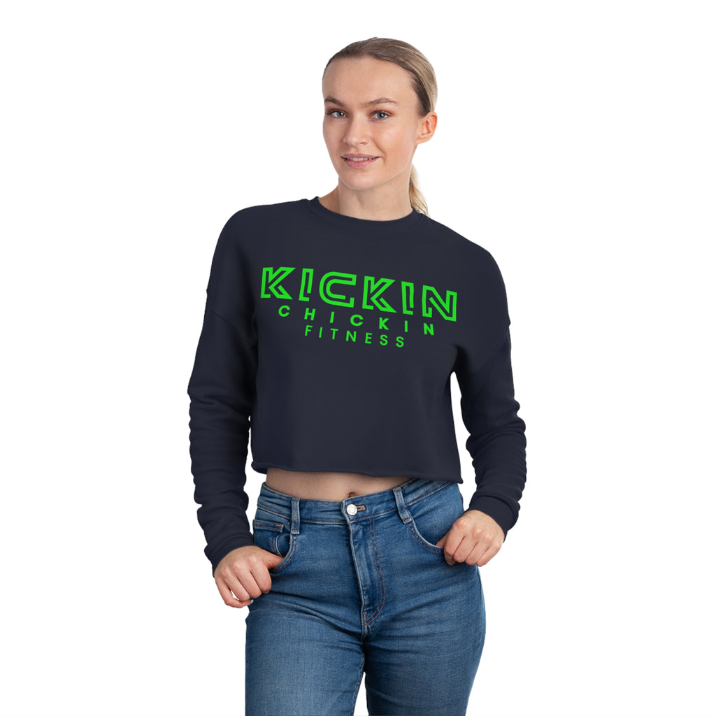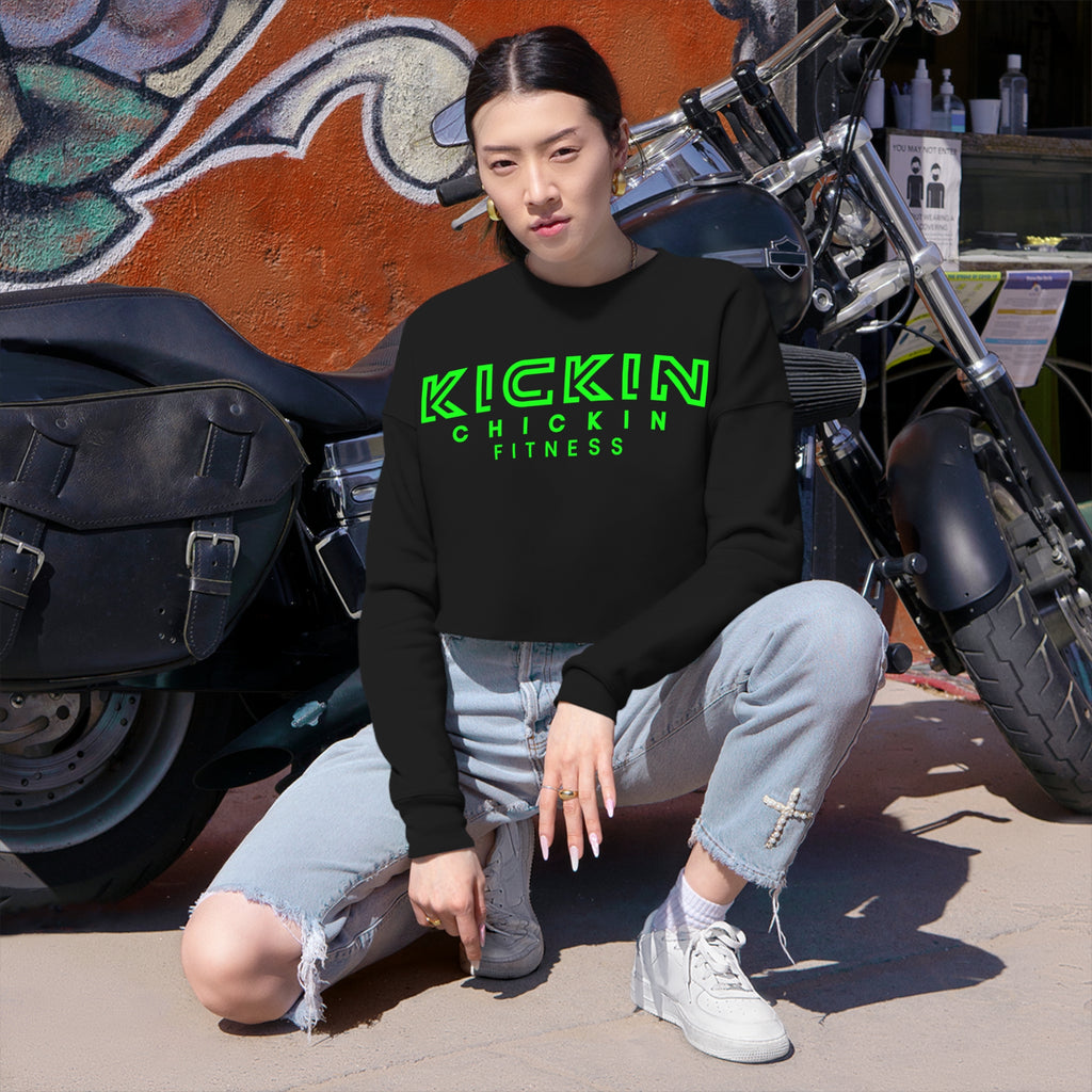 Kickin Chickin Fitness Women's Cropped Sweatshirt green logo